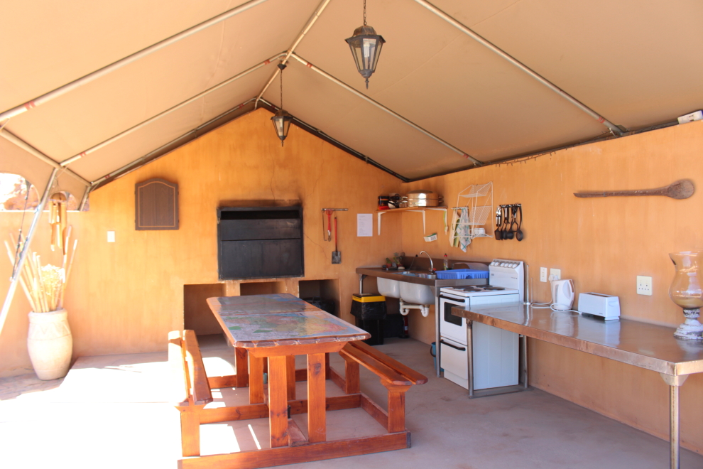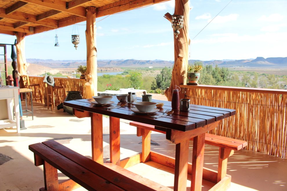 My sme mali každé ráno dohodnuté raňajky u Christine, ktorá nám chystala rôzne špeciality. Najviac sa mi rátalo to miesto, kde sme mali možnosť si ich vychutnať. Bola to veľká terasa v príjemnom tieni s úžasným výhľadom do diaľky až na hnedo – čierne kopce Namíbie.