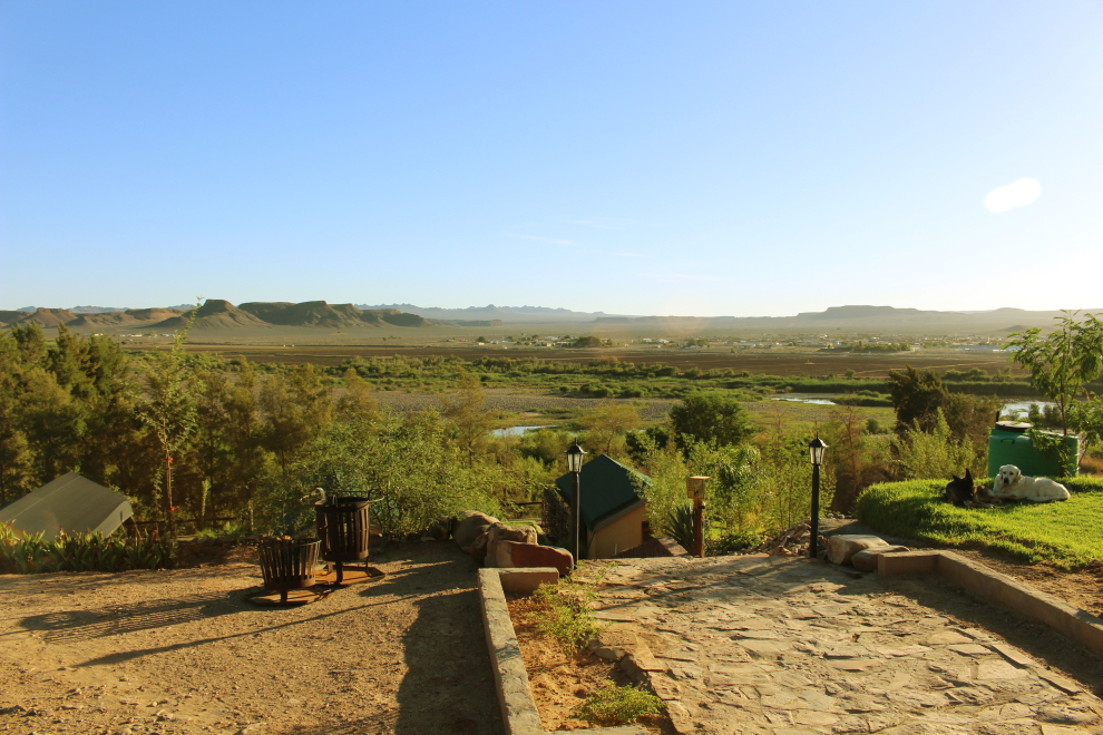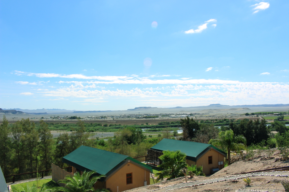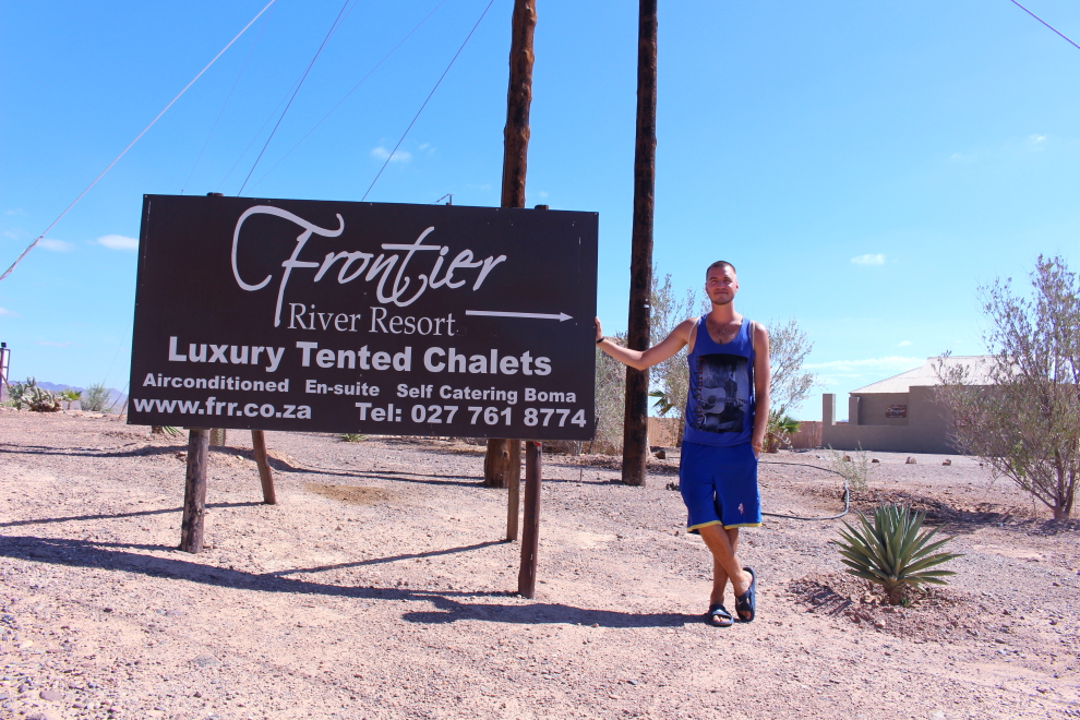 Ráno po zobudení som uvidel krásny výhľad a uvedomil som si, kde som – v rezorte Frontier River Resort. Majitelia sú juhoafricko – nemecký pár Christine & Graham. Svojpomocne vybudovali z miesta pri rieke oázu šťastia a pokoja. Rezort sa nachádza priamo pri rieke Orange River a len pár kilometrov od miesta Vioolsdrif, ktoré tvorí hraničný prechod medzi dvomi štátmi Južnou Afrikou a Namíbiou.