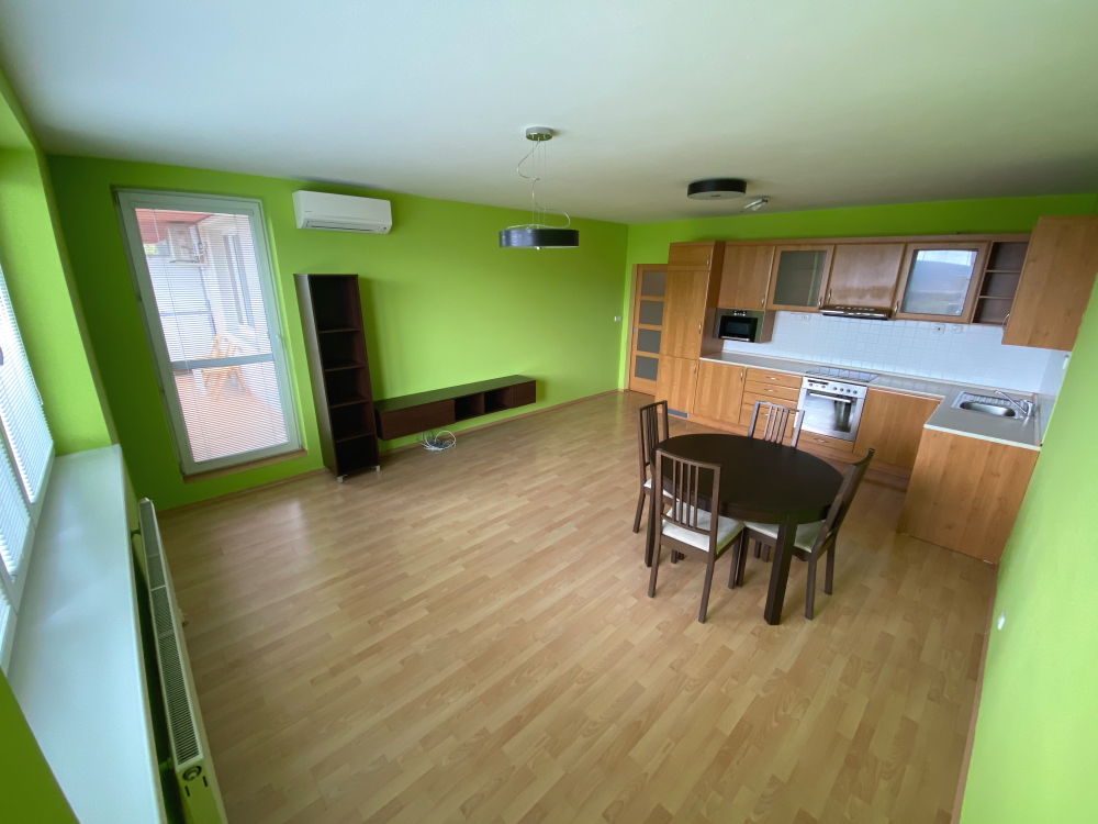 Dispozíciu bytu tvorí veľká vstupná chodba s dostatkom úložného priestoru, kuchyňa prepojená s obývačkou – výstup na lodžiu, 2x nepriechodná izba, kúpeľňa so sprchovým kútom aj vaňou, samostatné wc. Byt má juho – západnú orientáciu, priestrannú lodžiu s výhľadom na zeleň a Dunaj. Kuchyňa je kompletne vybavená – vstavaná chladnička s mrazničkou, rúra Whirlpool, mikrovlnka Whirlpool , nová umývačka riadu, sklokeramická doska, nerezový drez.