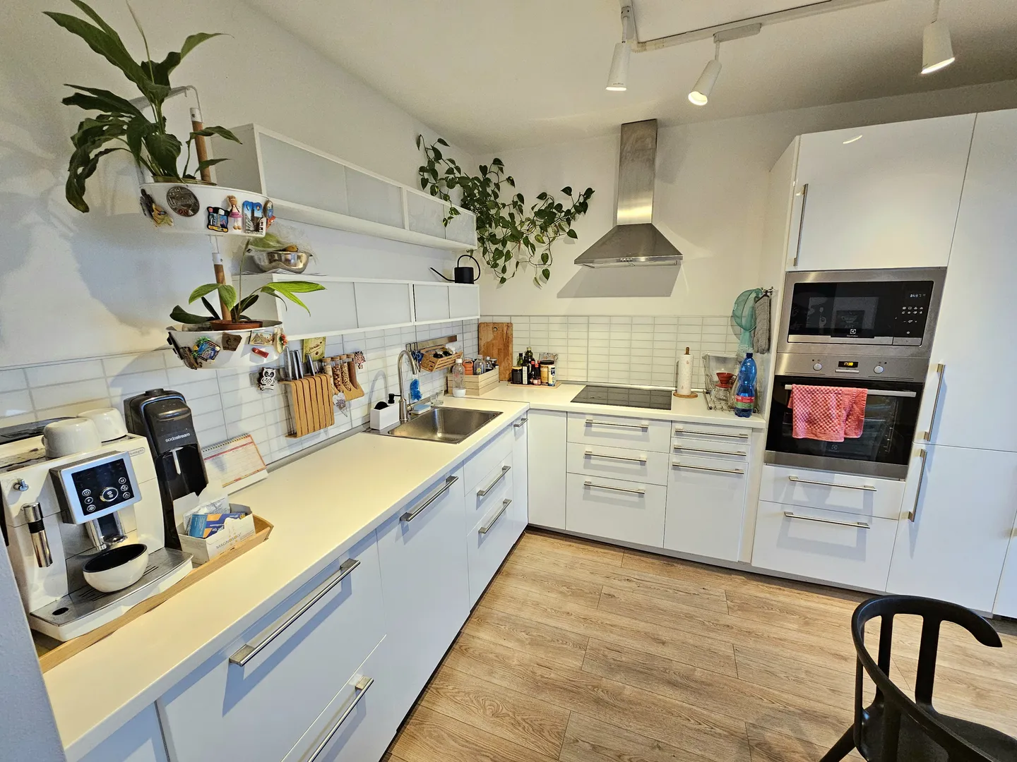 – kuchynská linka so vstavanými spotrebičmi (indukčná varná doska, digestor, zabudovaná elektrická rúra, zabudovaná mikrovlnka, chladnička s mrazničkou, umývačka riadu)