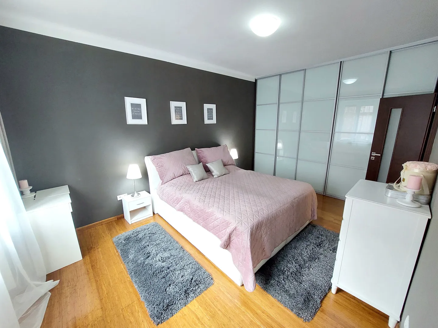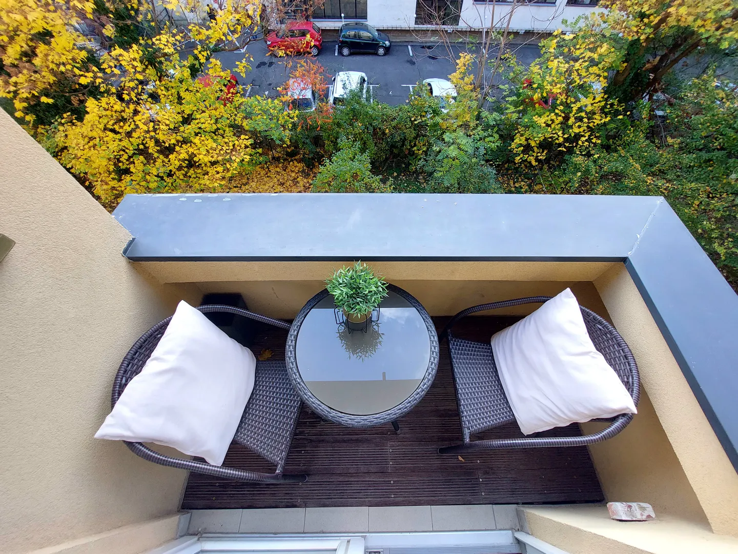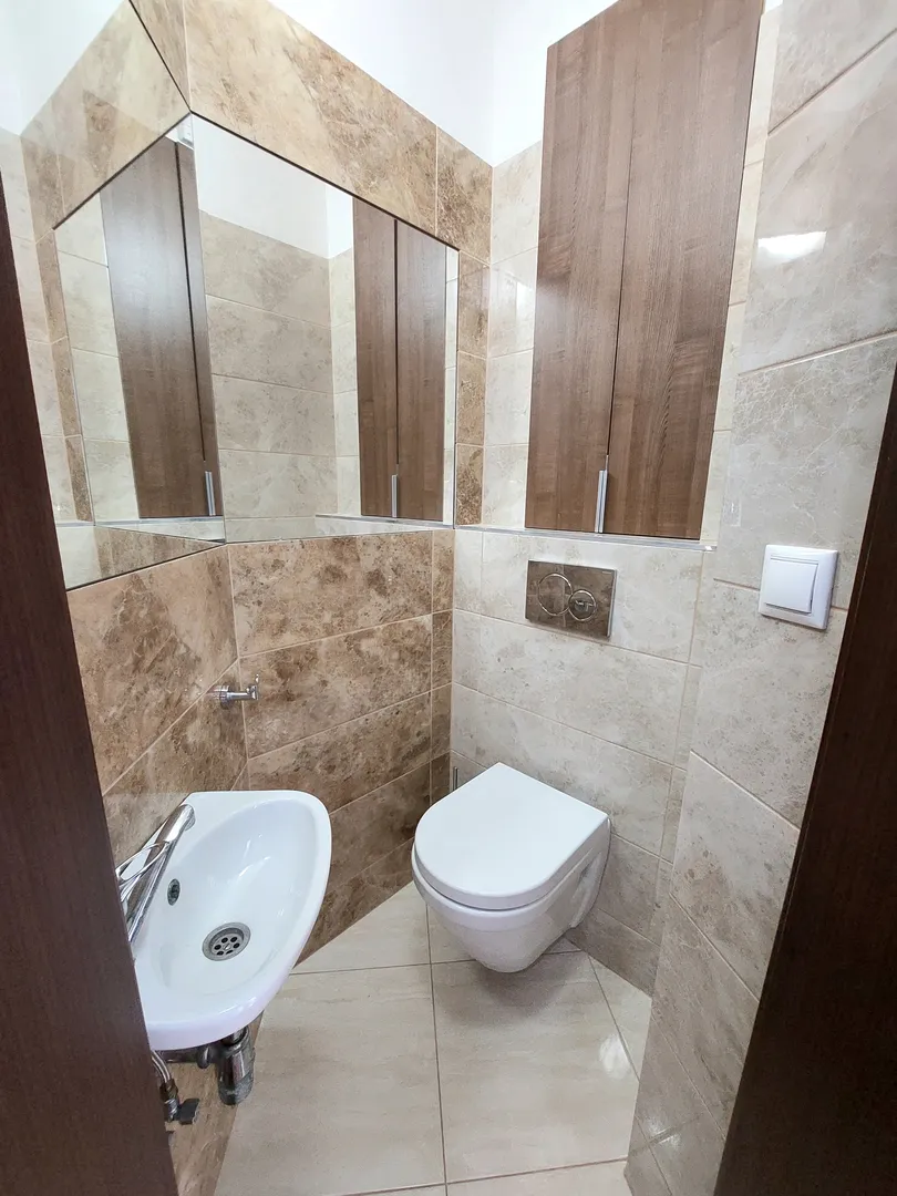 Novú dispozíciu bytu tvorí priestranná vstupná chodba, kuchyňa prepojená s obývačkou so vstupom na balkón, veľká spálňa, kúpeľňa s vaňou a WC, druhé samostatné WC s umývadlom. Vďaka svojej orientácii je byt veľmi tichý a svetlý, všetky okná smerujú do vnútrobloku.