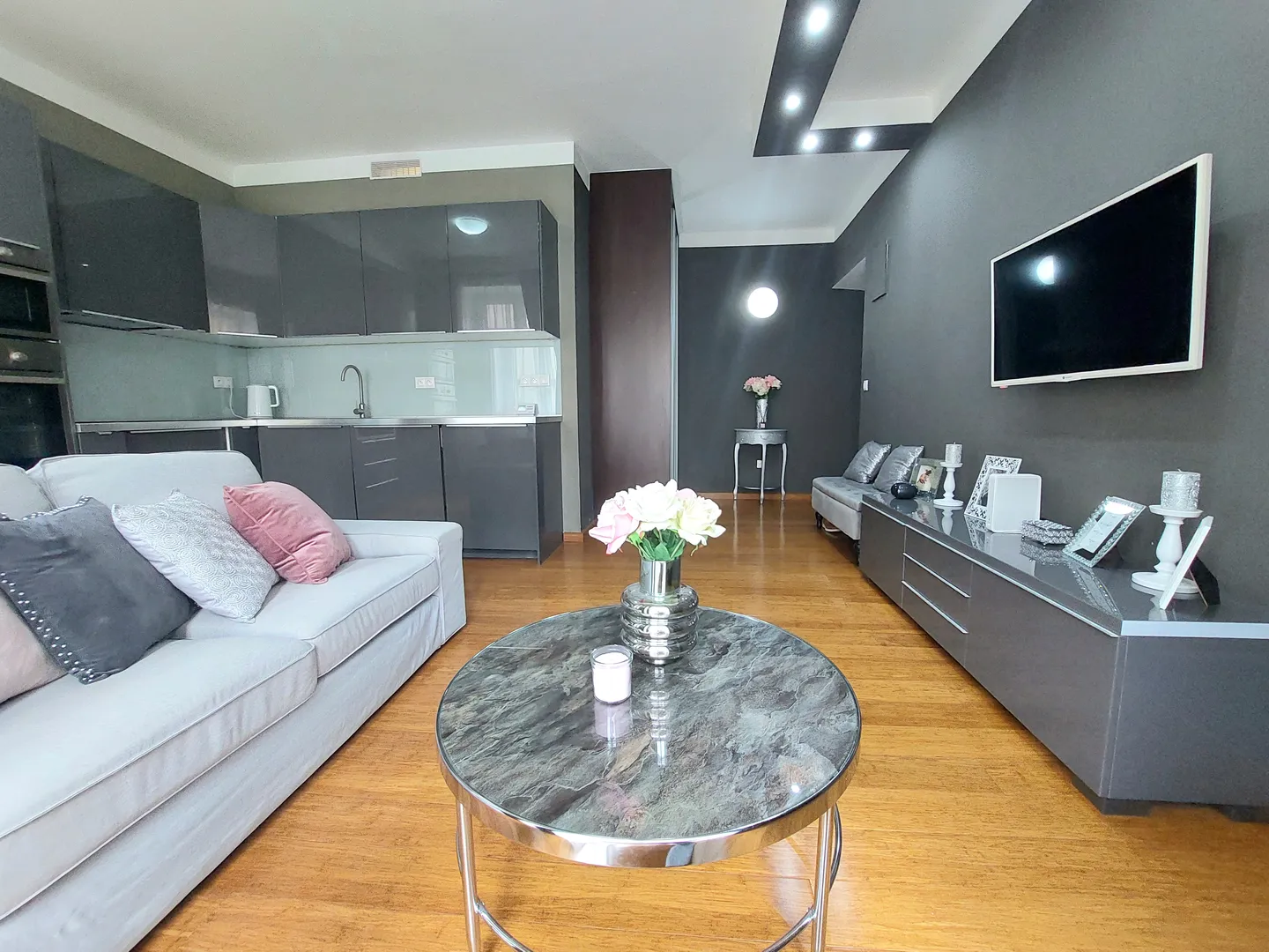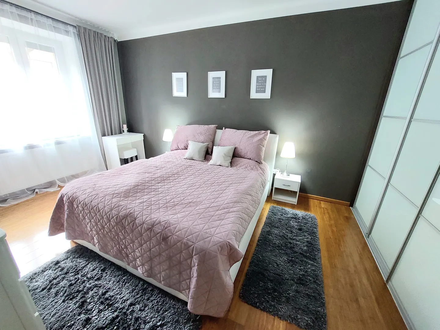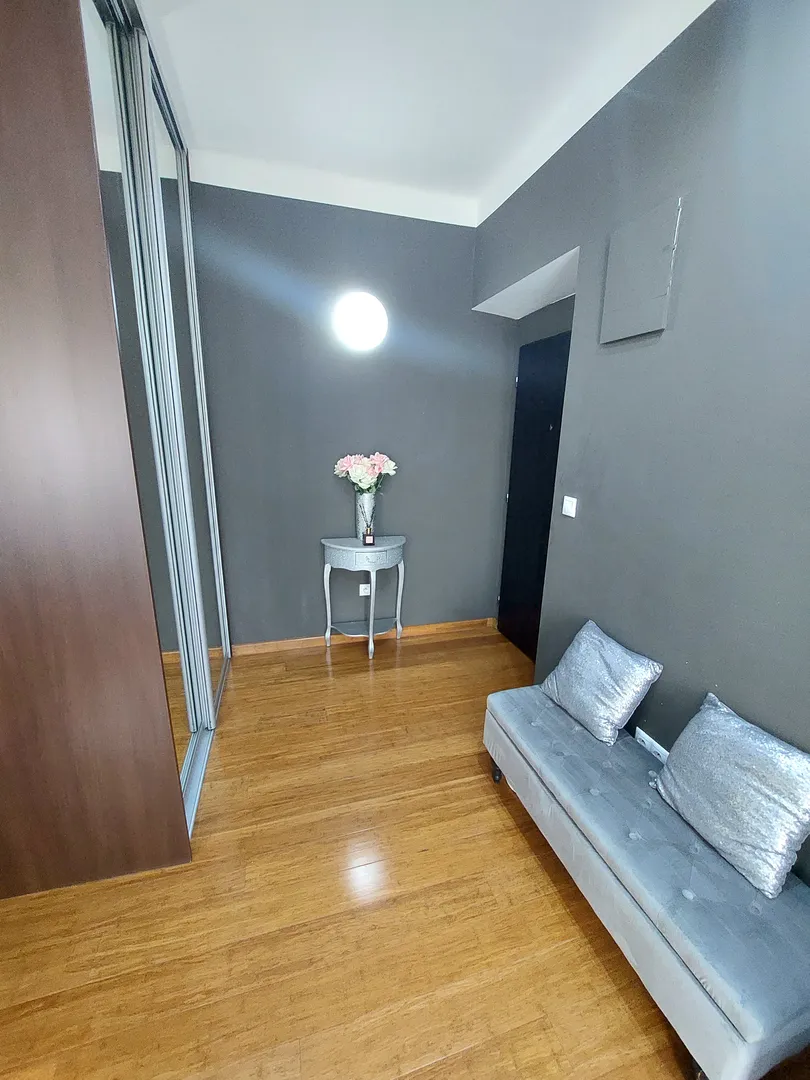 Novú dispozíciu bytu tvorí priestranná vstupná chodba, kuchyňa prepojená s obývačkou so vstupom na balkón, veľká spálňa, kúpeľňa s vaňou a WC, druhé samostatné WC s umývadlom. Vďaka svojej orientácii je byt veľmi tichý a svetlý, všetky okná smerujú do vnútrobloku.