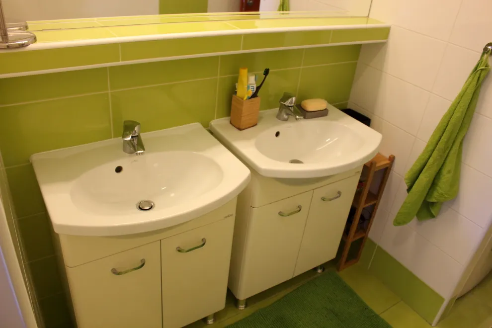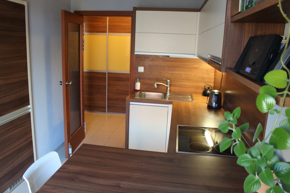 – nové radiátory, sprchový kút a dve umývadlá v kúpeľni, vstavané skrine v chodbe a spálni.