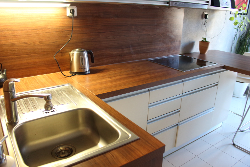 – nová elektroinštalácia, voda, odpad, kuchynská linka na mieru so zabudovanými spotrebičmi, plastové okná, repasované drevené parkety, dlažba v chodbe, kuchyni a kúpeľni.