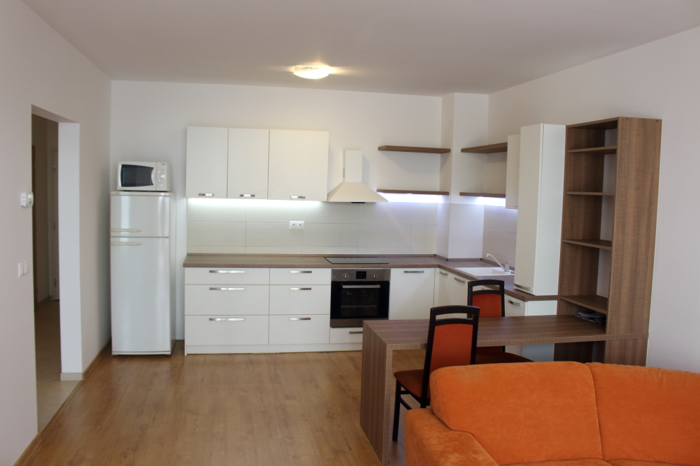 Popis bytu: 2 izbový byt je veľmi dobre dispozične riešený a pozostáva zo vstupnej chodby, kúpeľne so sprchovým kútom, samostatná toaleta, spálne, šatníka, obývacej miestnosti prepojenej s kuchyňou so vstupom na terasu.
