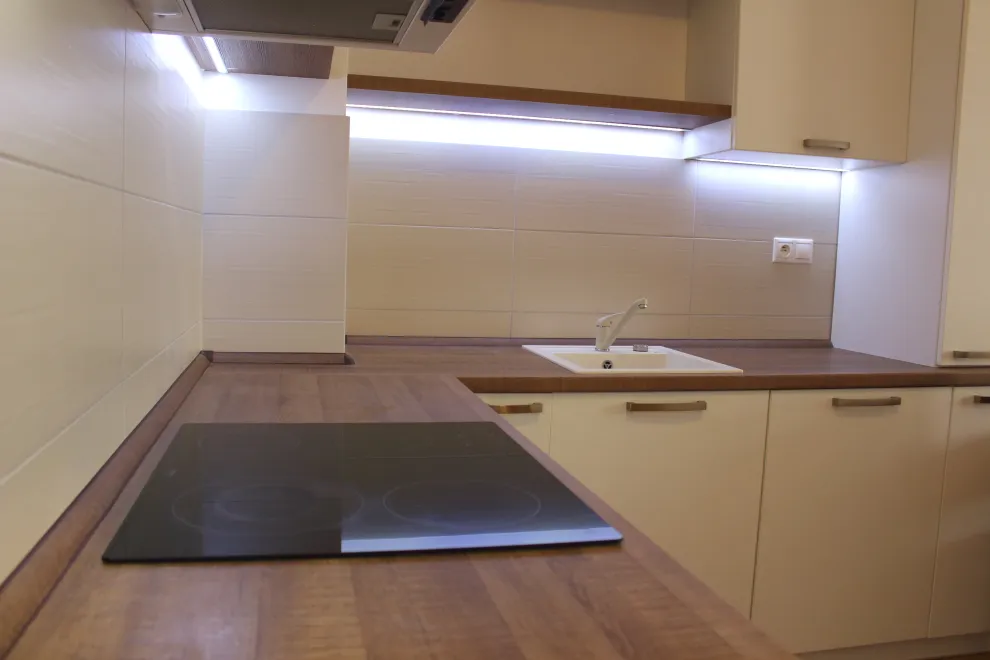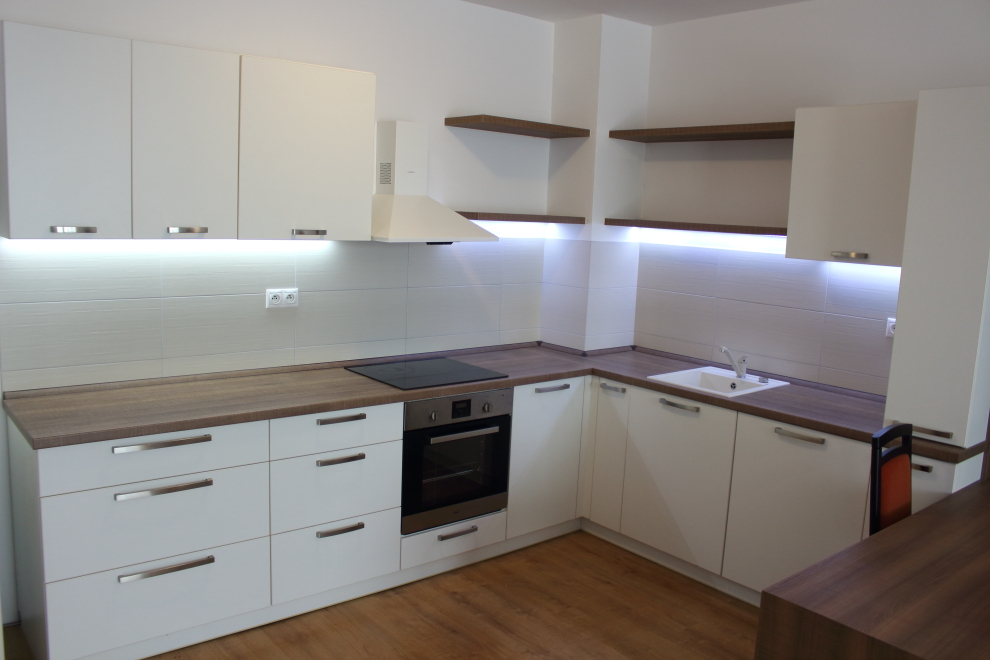 – kuchynská linka so spotrebičmi – chladnička s mrazničkou, umývačka riadu, el. sporák, rúra