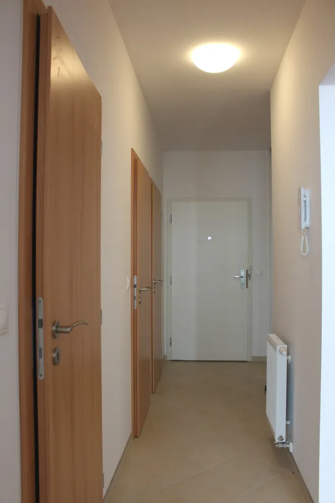 – v byte sú kvalitné plávajúce podlahy, na chodbe a kúpeľni je dlažba