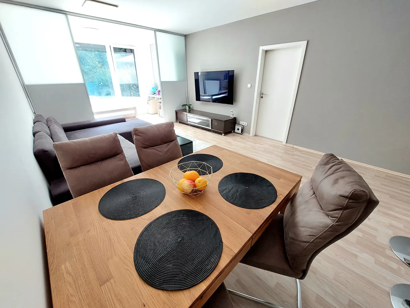 Byt sa nachádza na prízemí, orientácia je J-V. Samotný byt disponuje obytnou plochou 68,50 m2 + 150 m2 predzáhradka.
