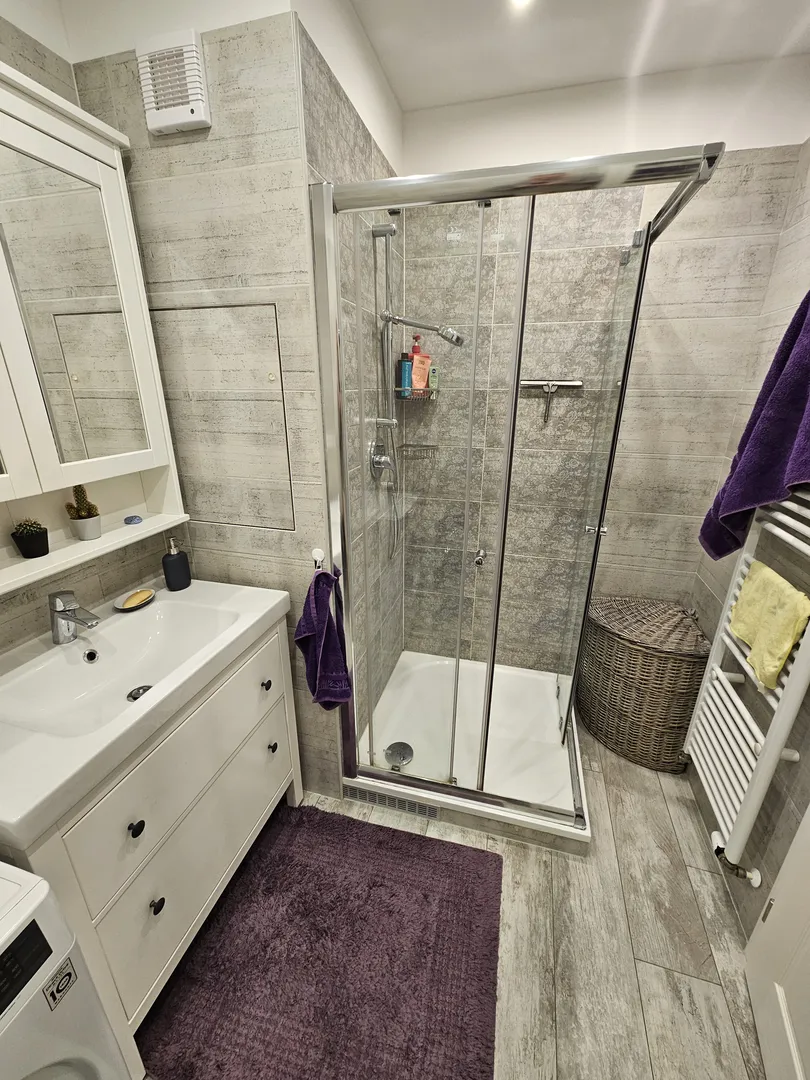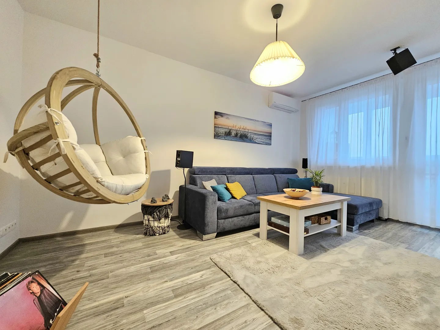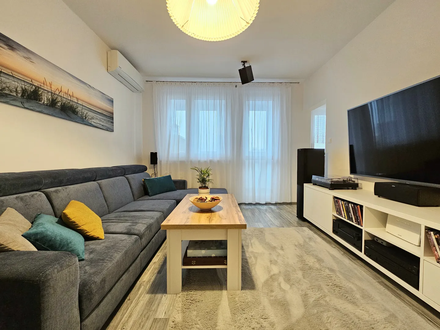 Byt prešiel kompletnou rekonštrukciou vrátane nových rozvodov elektriny a vody, plastových okien s interiérovými žalúziami a exteriérovými hliníkovými roletami v spálňach, novej kuchynskej linky so vstavanými spotrebičmi, laminátových podláh, dlažby a obkladov v kúpeľni a WC. Bezpečnostné dvere ADLO zaručujú bezpečnosť a komfort bývania. Byt je vybavený klimatizáciou a termoizolačnou fóliou Skyfol, ktorá zabezpečuje príjemnú klímu počas celého roka.